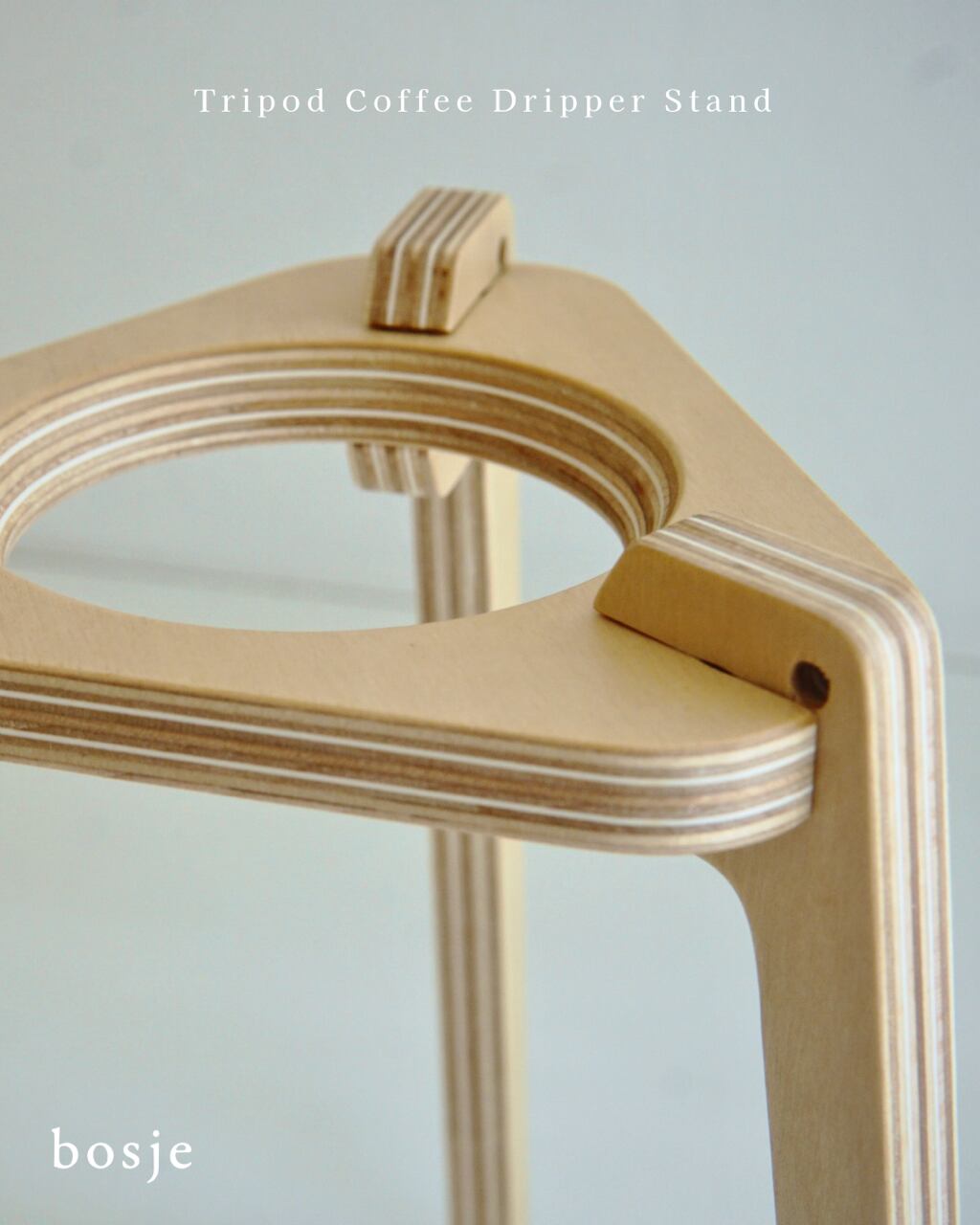 ご自宅のコーヒータイムではもちろん、キャンプ場や登山といったアウトドアシーンでも活躍する、機能性と日本の美意識を兼ね備えた「トライポッド・コーヒードリッパースタンド」。組み立てて使う三脚式のデザインで、凹凸のある地面でも安定して使用できるため、山や森のなかでも本格的なコーヒーが楽しめます。使用後は分解し、コンパクトになるため、バックパックにすっきり収まります。